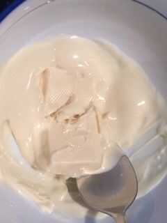 Mezclar todo con una cuchara para que forma una mixture(liquidy) homogénea.