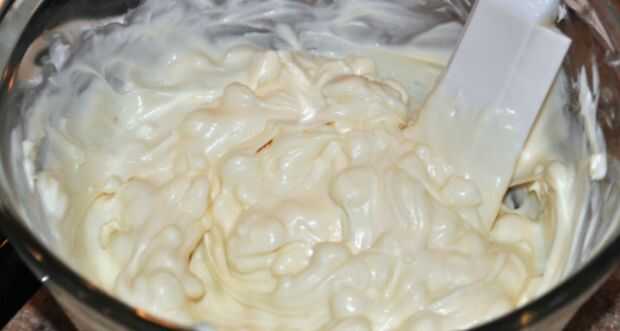 Una vez caliente retirar del fuego y verter sobre el chocolate blanco.