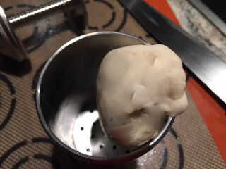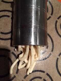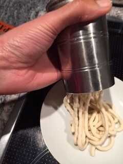 Engrase el interior de la prensa de fideos con un poco de mantequilla para que el chocolate no se pega a los lados (Qué desperdicio sería!)