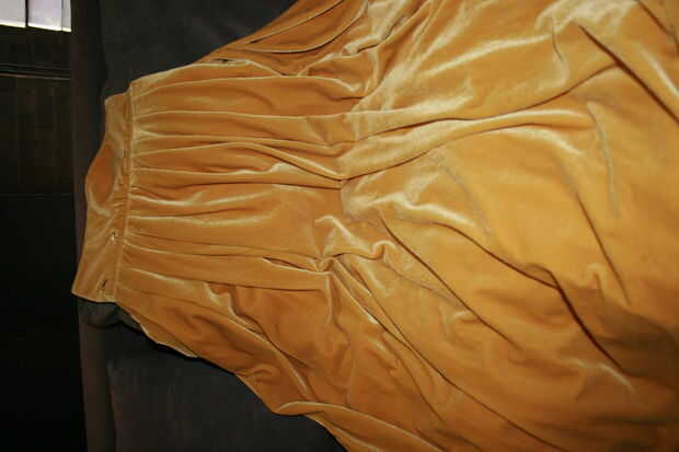 Terciopelo es a una tela de grano o pila – lo que significa tiene una elevada superficie (fuzzy). Telas de pila cambiará de color dependiendo de cómo les llega a la luz. A pesar que quería un círculo patrón falda, fui para que el modelo de tubo garantizar que la luz se golpean con más o menos el mismo ángulo de todo.