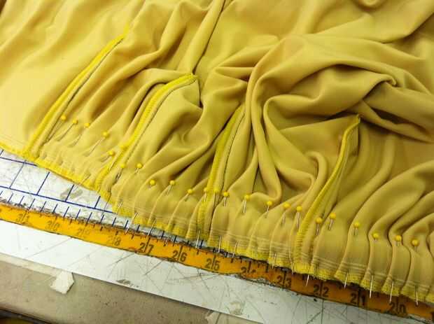 Ha sido un rato por lo que no recuerdo exactamente cuántas yardas de tela usé pero corté círculos de la mitad, por lo que las costuras son la parte.