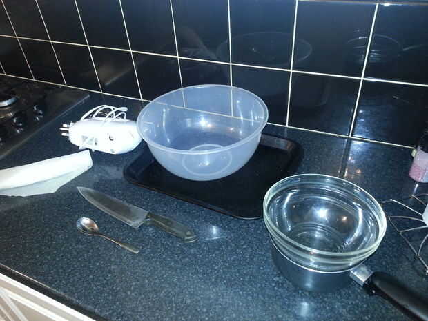 -Un tazón de vidrio y maceta-para derretir chocolate - podría ser reemplazado con cualquier otro medio de la fusión de chocolate