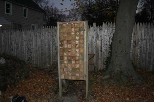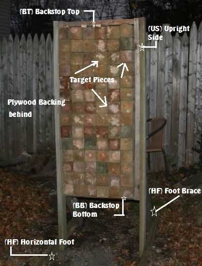 El objetivo está compuesto por ochenta y cuatro bloques de 4 "x 4"; 21" de ancho x 49" de alto. Esto puede simular la altura y anchura de una meta oficial donde no es posible ya sea con los materiales para hacer un oficial blanco y respaldo, dejar por un tiempo prolongado, o el espacio es un problema.