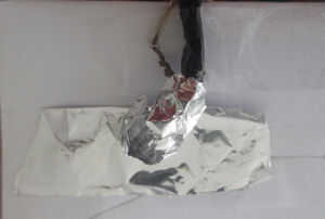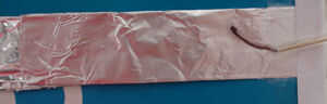 Ahora toma una hoja de pf de la pieza y ponerlo sobre el tac azul asegurándolo así.