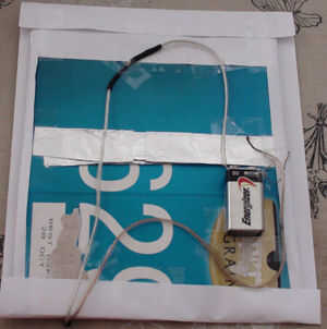 Doblar el papel alrededor de la parte posterior de la blanco y cinta en el lugar junto con el circuito y la batería.