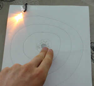 Ahora usted puede alinear su segunda pieza de papel y en lugar de cortar un agujero te acercarás a tu objetivo.