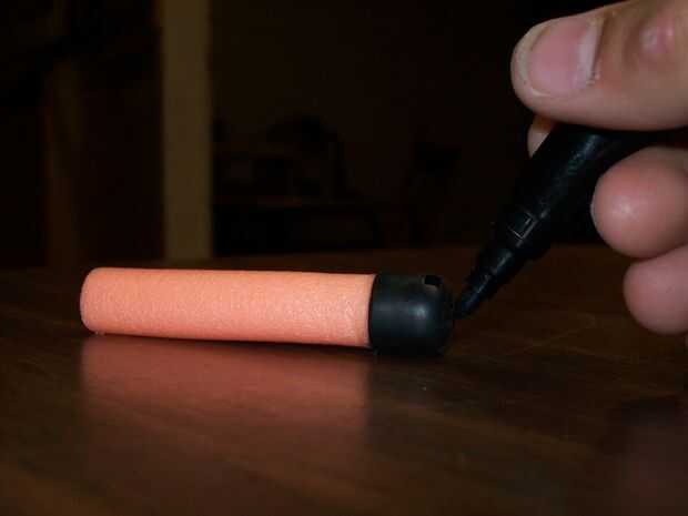 Primero necesita una pistola de nerf de cualquier tipo, luego necesitas una bala de nerf y una pluma, entonces necesita un par de tijeras y airsoft balas. necesita tirar de los extremos de la pluma y la punta de la bala de nerf. Ahora tienes que y pu