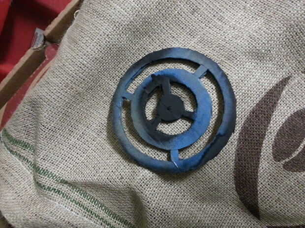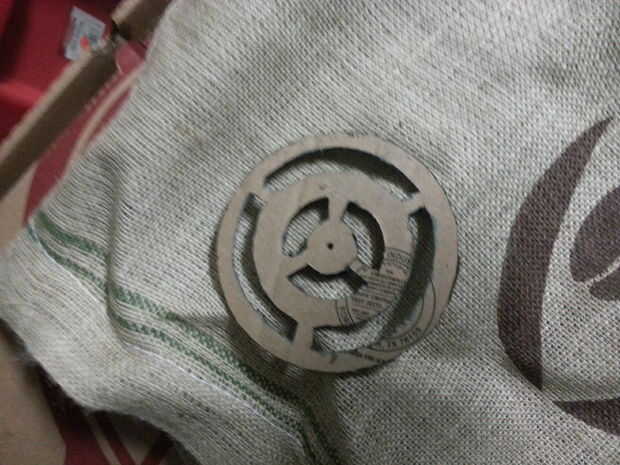 4 - cartón y pintura en aerosol (opcional). Corté algunos anillos de cartón para hacer un destino y luego rocíe lo pintó sobre la bolsa