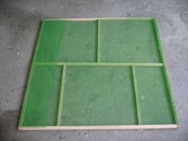 para la parte posterior, he puesto la malla de plástico diseñada para detener las flechas en caso de perforado a través, que lo dudo debido al grueso de las esteras del rompecabezas. alambre de pollo de metal puede ser utilizado pero no quiero rayar mis flechas. había hecho un cuadrado separado en la misma medida de mi caja, luego clavar la malla sobre la misma, extendiendo uniformemente. entonces clavó en la parte posterior de la caja para hacer aún más estrictos.