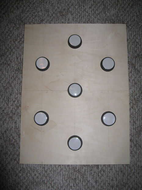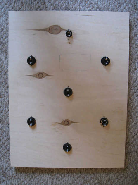 entonces perforado 7 agujeros destinados a los siete objetivos/botones de Toda la electrónica y finalmente colocó en las posiciones mostradas en la imagen.