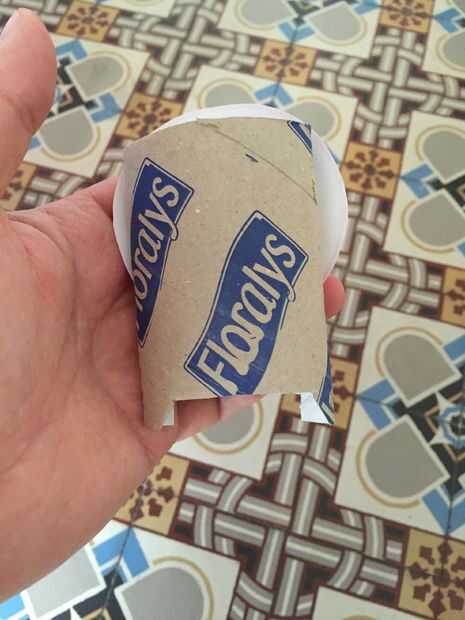 En el fondo, corte la parte delantera y la parte posterior de la base como se muestra en la imagen. Esto no necesita ser exacta. El propósito es dejar que el destino caer fácilmente una vez golpeado por la flecha, por lo que tendrá que intentar con los dedos simulando el golpe.