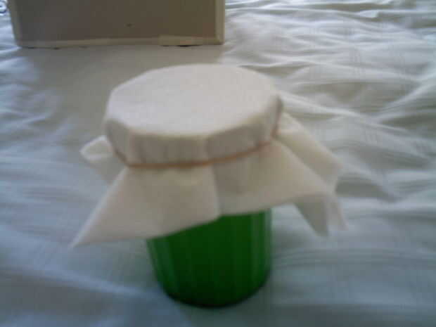 Envolver la goma alrededor de la taza para que la servilleta sella la taza.