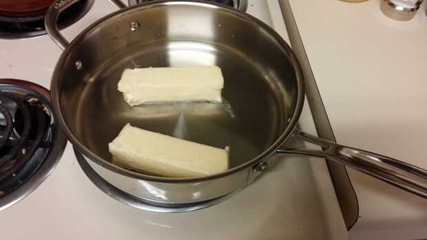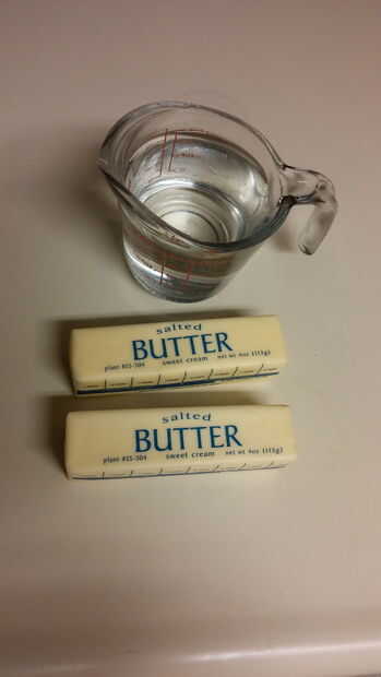 Paso 1: Coloque la mantequilla y el agua en una cacerola y llevar a ebullición.