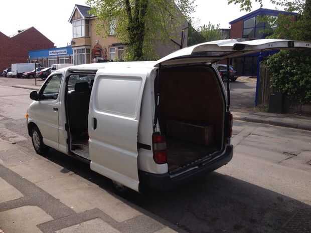 Cualquier van blanco tamaño mediano va a hacer, aunque trate de conseguir uno que tiene la capa interior forrado ya y levante la puerta trasera. Compramos un 1998 Toyota Hi Ace que tenía 350.000 millas en el reloj. Un alto kilometraje que seguro que no es más que un riesgo calculado, pensé si había hecho lo que ahora ya entonces era probablemente indestructible como Toyota Hi Lux en Top Gear que no mueren (similar motor). Tenía 6 meses MOT y suficiente impuesto para vernos a través de nuestras vacaciones. Hemos escogido para £350 por lo que fue una ganga.