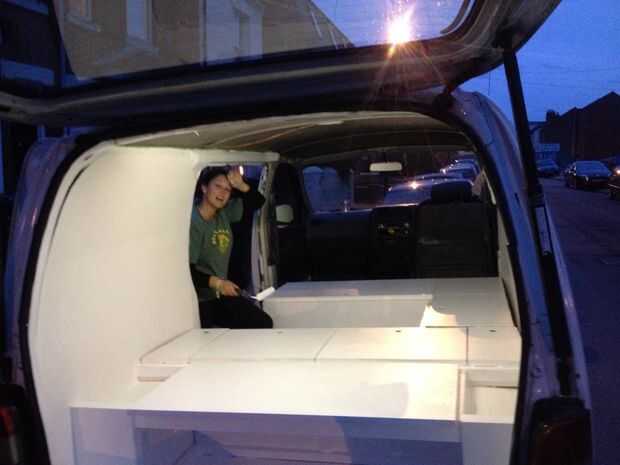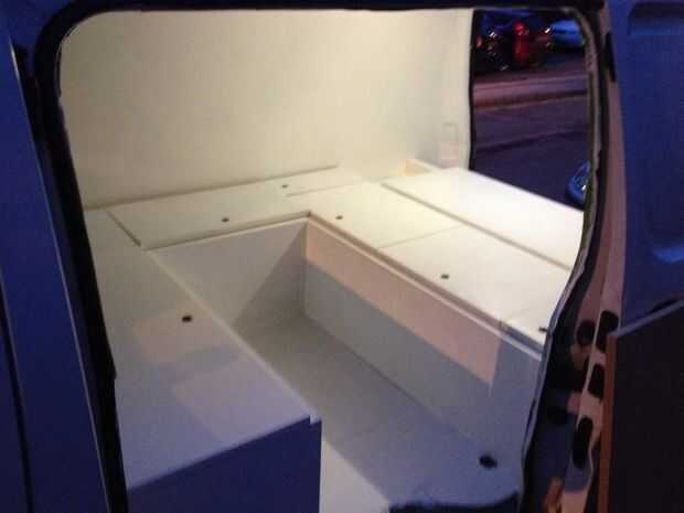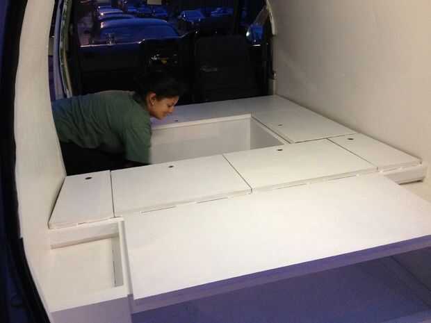 Ayudó a mi hermano pequeño construir una conversión de camper para su 4Runner este fin de semana. Es un conjunto de tres partes con una puerta del gabinete, deslice hacia fuera la tabla, bajo de almacenamiento y una zona de dormitorio. La sección de