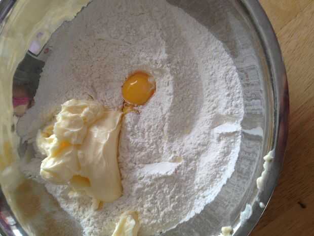 Añadir las yemas y la mantequilla, hasta que la mezcla es grumosa