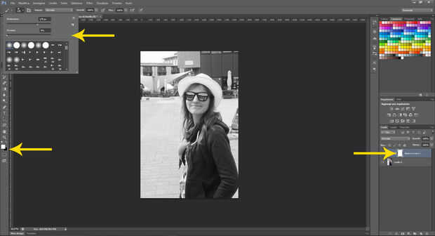 - Seleccione la herramienta Pincel, con la dimensión correcta y una dureza debajo de 40/50%