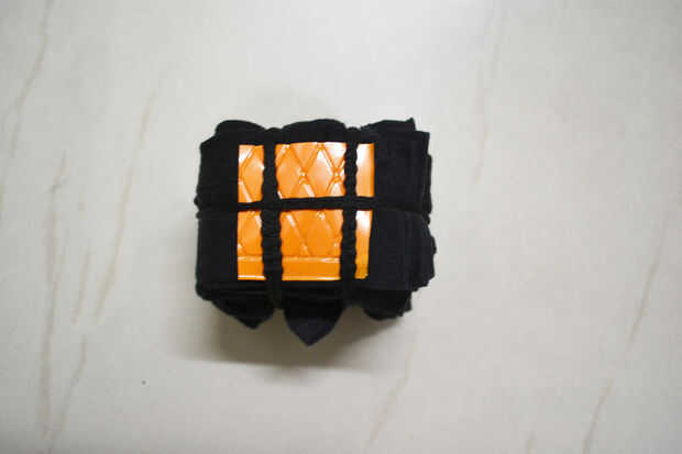 Una vez que se dobla correctamente, coloque los cuadrados de plástico en los bordes expuestos y garantizar la camiseta todo con la ayuda de algunas bandas de goma.
