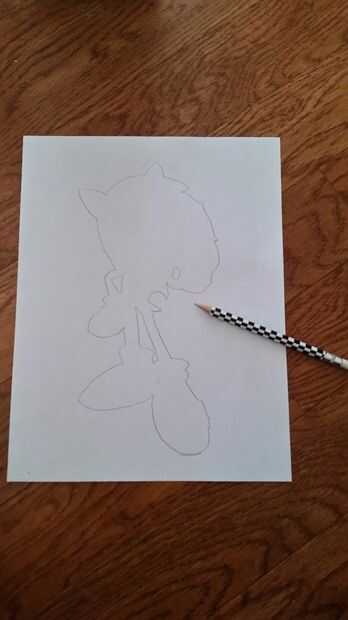 Dibujar o trazar la silueta en la hoja de papel. Si intentas dibujar funciones en su silueta, que no demuestran para arriba. Opté por Sonic The Hedgehog para mi diseño, pero puede utilizar cualquier imagen que desee.