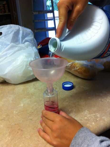 Vierta el blanqueador en la botella y vuelva a colocar la tapa