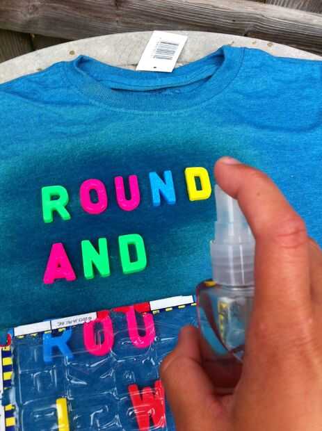 Aerosol el blanqueador en la camisa solamente alrededor de las palabras