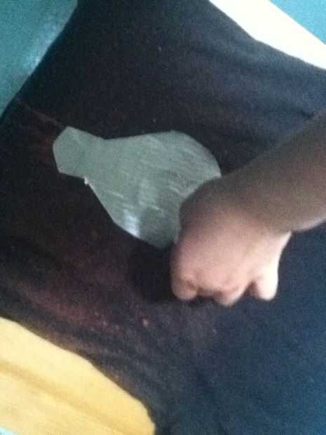 Después de que haya secado durante unos minutos y han mostrado los puntos hasta puede quitar la cinta. pero tenga mucho cuidado al primer trapo de la lejía que ha pudelado en la cinta si no quieres correr las gotas abajo de su camisa (pero se ve muy bien si se hace bien).