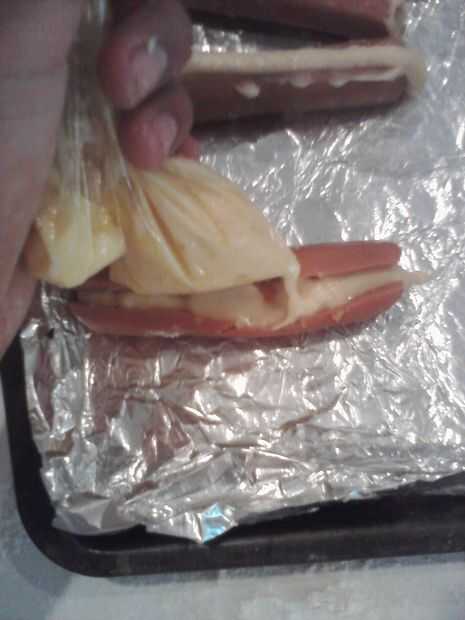 -Utilizar esto para rellenar fácilmente el relleno en la cavidad que hemos hecho en los perros calientes.