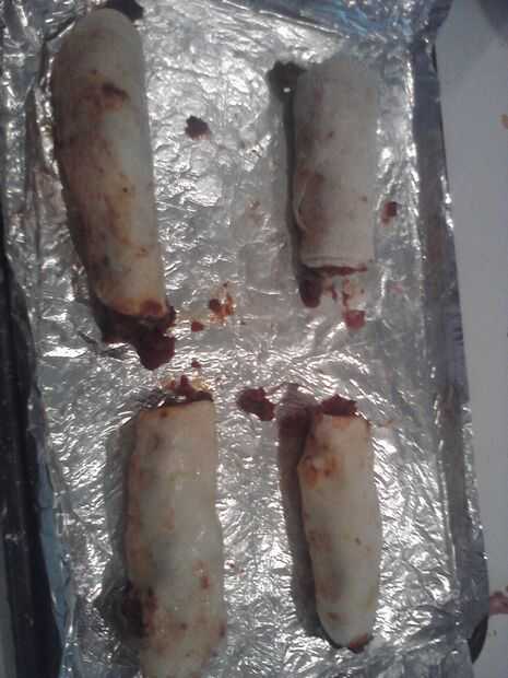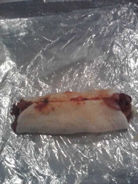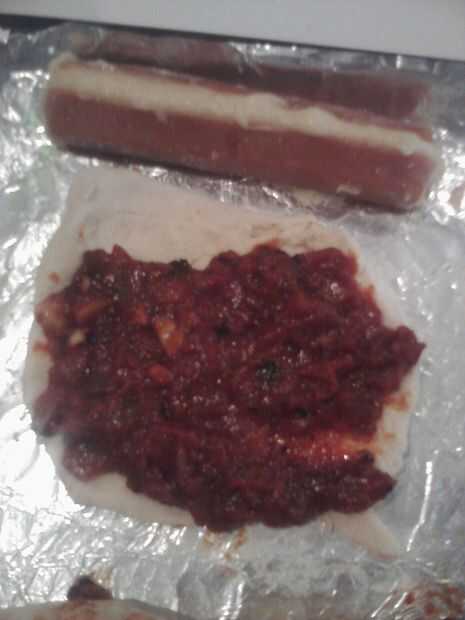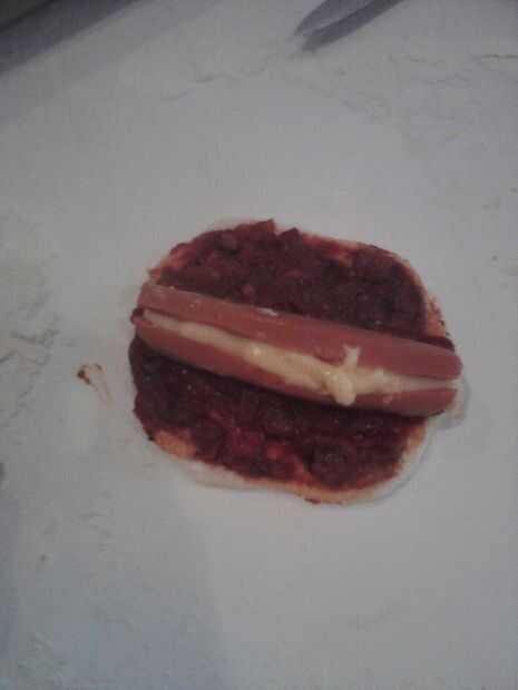 -Coloque el Hot dog en el centro, y papel la pizza alrededor de él como una cerdo en una manta