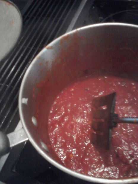-Poco a poco Vierta en la taza de Salsa Marinara. No salpicará rápido o!