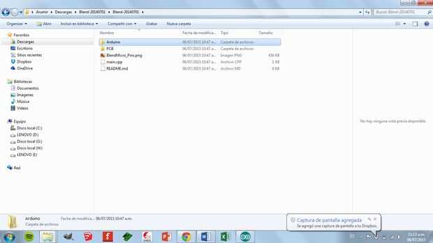 En este paso encontrarás para descargar cuatro la carpetas "mezcla 20140701, ble-sdk-arduino-0.9.0.beta, nRF8001-20140701 y RBL_Windows_Driver_Installer". También puedes descargarlas de la página de RedBearLab en la página primero de utilizaremos Micro, mezcla del "Mezcla 20140701".