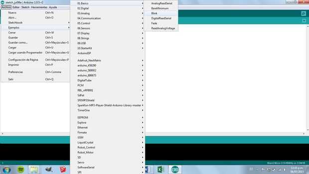 Abrir el ejemplo de "Parpadear" y cargarlo a la tarjeta. Si todo salio bien se debe de cargar pecado ningún problema el programa y superficie observar el led L en la tarjeta prendiendo y apagando.