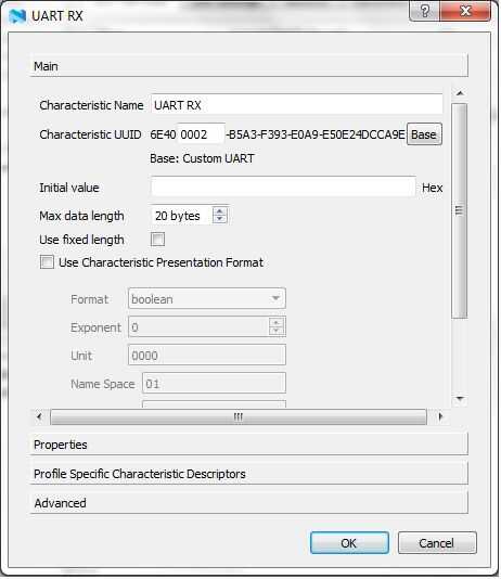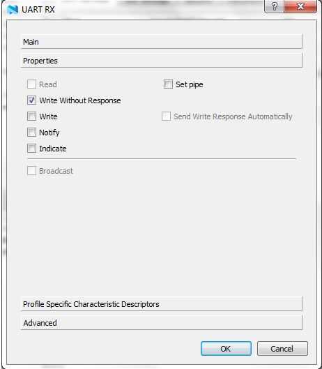 Para el segundo servicio, vamos a incluir las características UART RX con la siguiente configuración vista arriba.