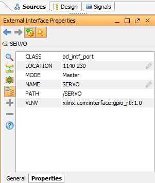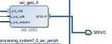 Encontrar el bloque de AXI GPIO y haga clic en los dos bares junto a la GPIO +. Haga clic en "hacer externo. Seleccione la salida GPIO y la sección de propiedades aparecerán a la izquierda del diagrama de bloque. Cambie el nombre este GPIO SERVO.