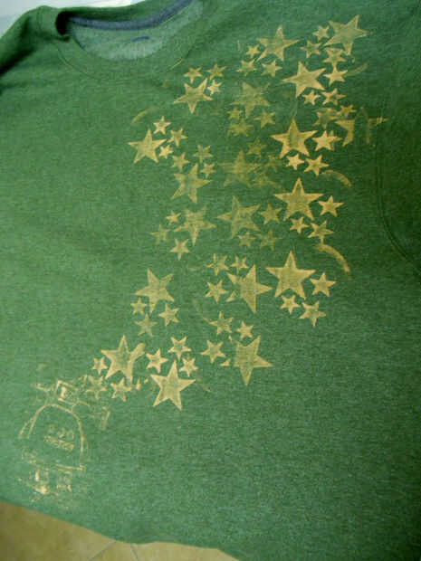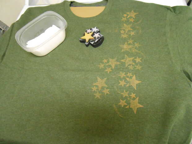 El blanqueador no será visible en el sello o al principio en la camiseta. La sudadera empezará a procesar el blanqueador y el diseño comenzará a mostrar. El color que contrastará el color original de la sudadera. Puede hacer un punto de prueba de cloro en el interior de la camiseta, si desea ver el resultado de color final.