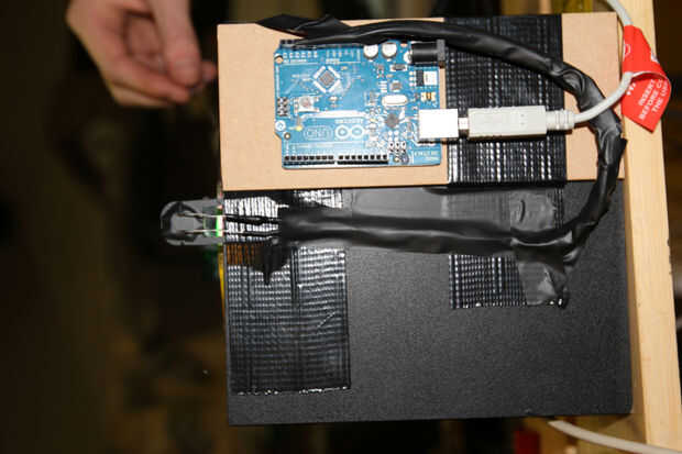 Este sensor fue conectado a una placa Arduino. Cada vez que la grasa interrumpe el láser, el Arduino da una señal a nuestro software.