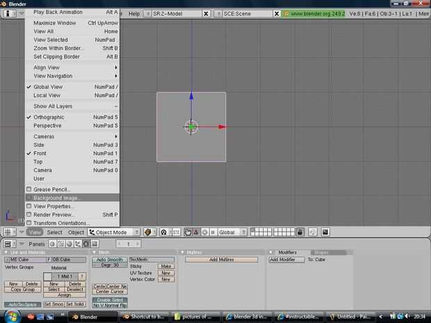(Foto 8) Haga clic en agregar el modificador luego haga clic en el espejo, ahora junto al modificador espejo será una caja diciendo x, y y z, asegúrese de selecciona sólo z.