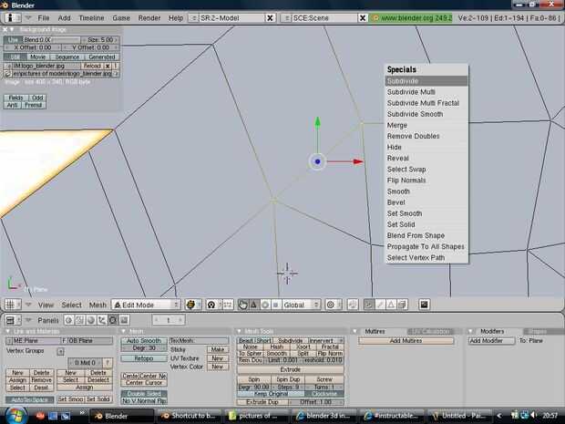 ocasionalmente puede que necesite subdividir para conseguir más los verticies (W - subdividir) o fusión para unir 2 verticies (w-fusión)