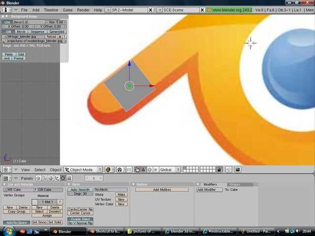 (foto 4) Ahora presiona tab para entrar en modo de edición y seleccionadas dos esquinas mas cercano al extremo del pegajoso un poco, extrue les y coloque los verdes en el borde del logo, para ello por el logo.