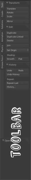 En el lado izquierdo de la vista 3d tienes la barra de herramientas donde usted puede traer en objetos de malla (crea), cambiar el lugar de los objetos de malla (transformación), animaciones y muchos más...