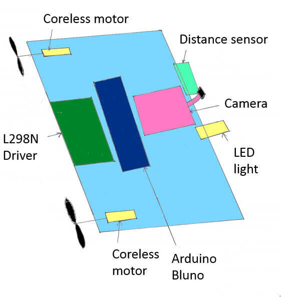 detalles de la construcción del dirigible control remoto construí. Aquí está un breve vídeo de su vuelo:El dirigible está controlada por un transmisor en el suelo, operado por un humano. Hay tres control palancas: una para cada motor y para el servo