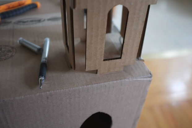 Para unir las torretas marcado y corte cuatro ranuras para mantener las pestañas en su lugar.