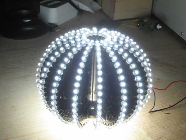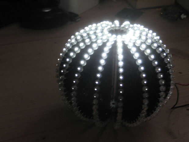 El código de ejemplo en la bola apenas atrae a unos patrones, algunos de los utiliza código modificado octobrite. Puede hacer individualmente cada led/rebanada cambiando una rebanada a la vez en un momento, o la bola entera.