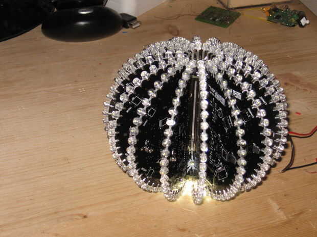 La bola funciona con controladores de LED TLC que 'cambiar' el estado de los LED de abajo de la bola, es un poco como un framebuffer en una computadora que carga el patrón que desee y actualizar a los chips y te aparecen, hay 4096 niveles de brillo.