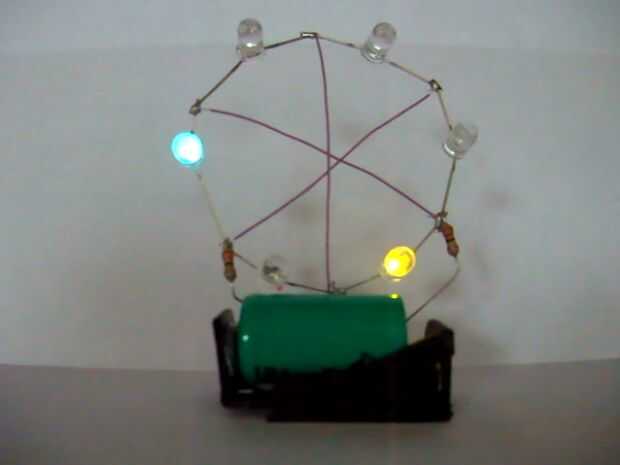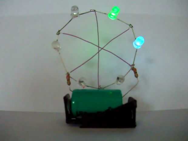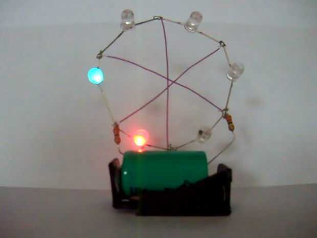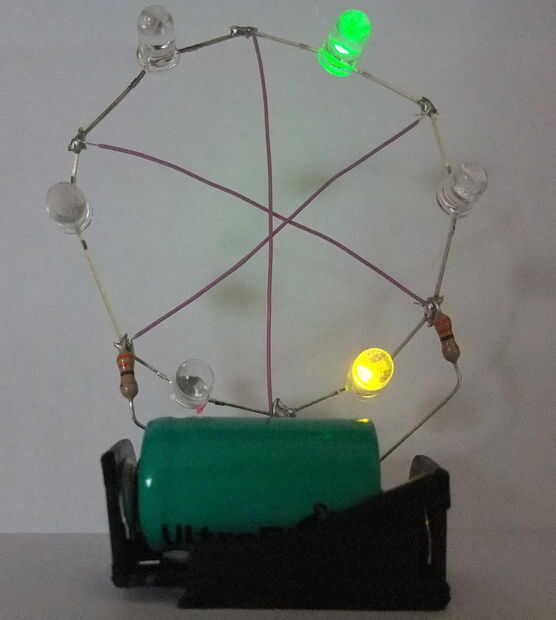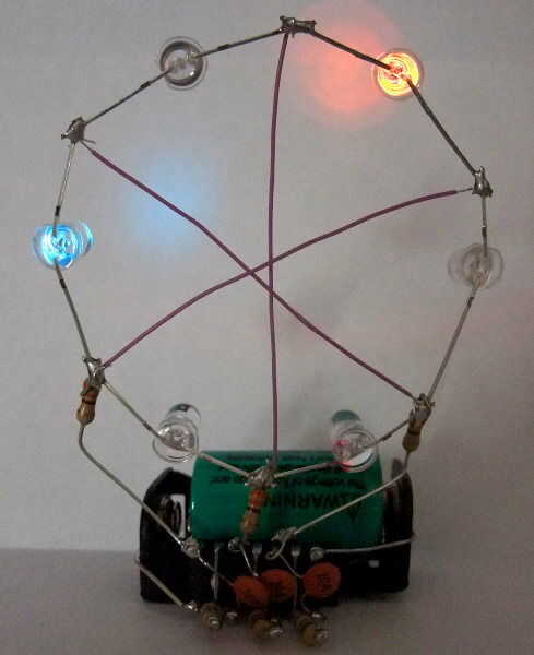 Se me ocurrió con esta 'cosa', que sólo se sienta allí y parpadea, por lo que llamo mi 'Blinkie Thingie'. Usando sólo un barato 74HC04 Hex inversor, ofrece una rueda de Color o tal vez una luz del disco para mascotas pequeñas.