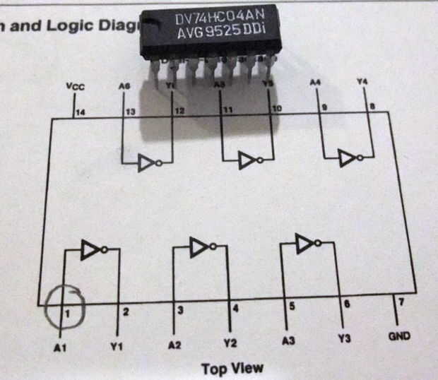 IC Inverter Hex de 74HC04. Muy fácil de encontrar (RShack, eBay etc) pero no sustituya!