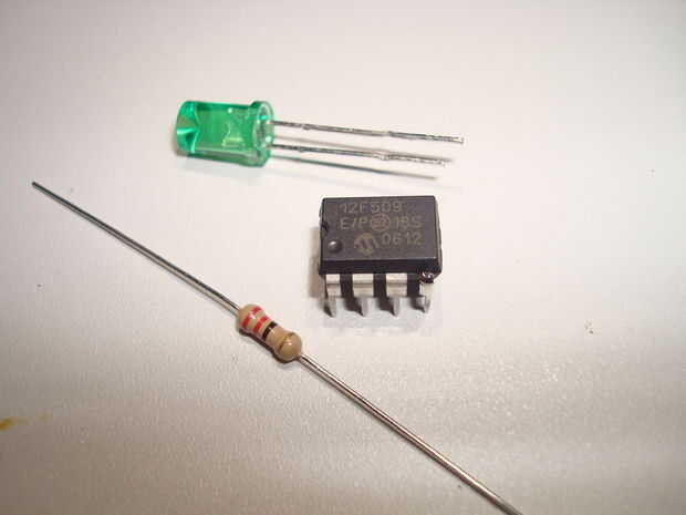 1 ea microcontrolador PIC de Microchip 12F509 (PN Mouser 579-PIC12F509-I/P)