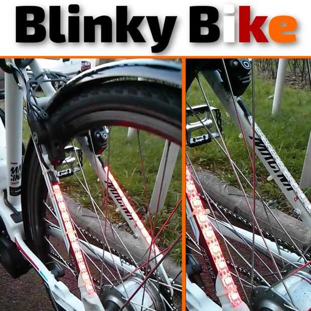 El proyecto bicicleta Blinky es la solución definitiva para agregar sistema de luz a cualquier bicicleta, (y bici eléctrica) mediante un banco de potencia de 5V o la bicicleta a bordo la batería. Se basa en bandas flexibles de NeoPixel LEDs (WS2812), para la parte delantera y trasera. El sistema basado en un microcontrolador Atmel ATtiny 85 y permite distintos modos de luz que pueden elegirse con dos interruptores de prueba del agua (uno para la mano izquierda) y otro para la mano derecha.