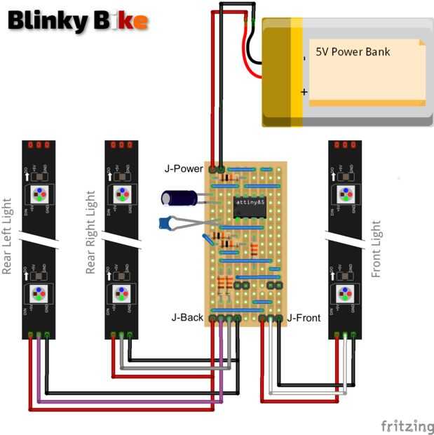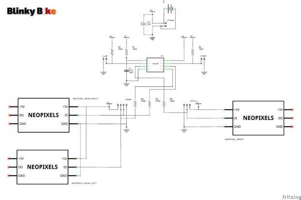 El sistema BlinkyBike está construido con el siguiente hardware: