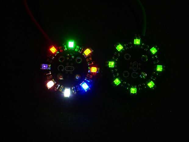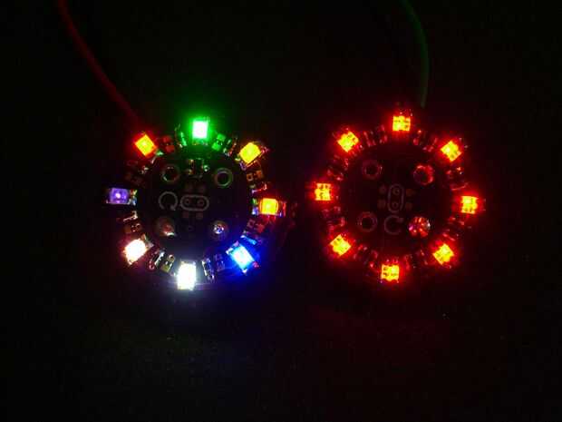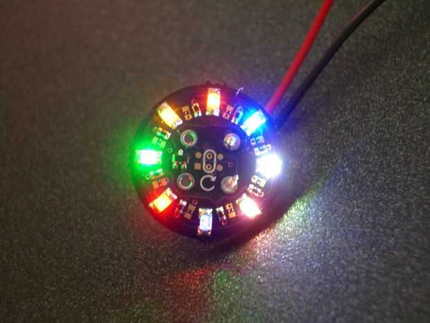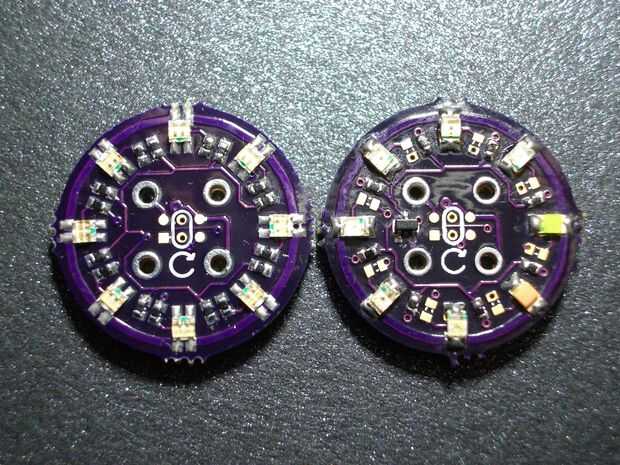 El resultado final funciona bastante bien, y gracias a un microcontrolador ATtiny13 en la parte posterior puede hacer un par de agradables efectos visuales. Acepta solo-color o color dual LED 0805.