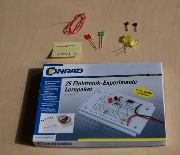 (Compré un "experimentación paquete" electrónica para €10 / $12 que contenía todo lo que necesitaba en el Conrad.)